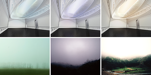 The light emitting surface of “Ellipsis” would subtly change color throughout the day to reflect the hues of the natural light outside. In the morning, a warm hue emanates from the edges of the surface. At noon in the summer the tone is bright and even, turning a cool indigo hue at dusk. The changes are not abrupt or absolute: they are almost undetectable, causing a gradual difference in reflections on the ceramic panels. Within the re-envisioned public space, “Ellipsis” fosters new atmospheres and experiences on each visit to the Renwick Gallery.